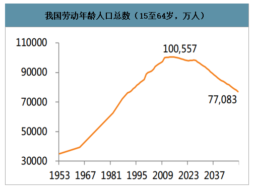 勞動(dòng)年齡人口加速減少。在2010年前后五年的時(shí)間里,中國的勞動(dòng)力結構發(fā)生了較大的變化,16至34周歲的活躍勞動(dòng)力群體占比從70%降低至43%,年輕的勞動(dòng)力群體供需數量在減少,勞動(dòng)力供需關(guān)系從原來(lái)的供大于求,逆轉為求大于供。聯(lián)合國的一項預測結果顯示,我國勞動(dòng)年齡(15至64歲)總人口在2010年左右達到峰值,2020至2025年期間勞動(dòng)年齡人口預計每年減少300萬(wàn)人以上,到2050年將減少2億人左右。